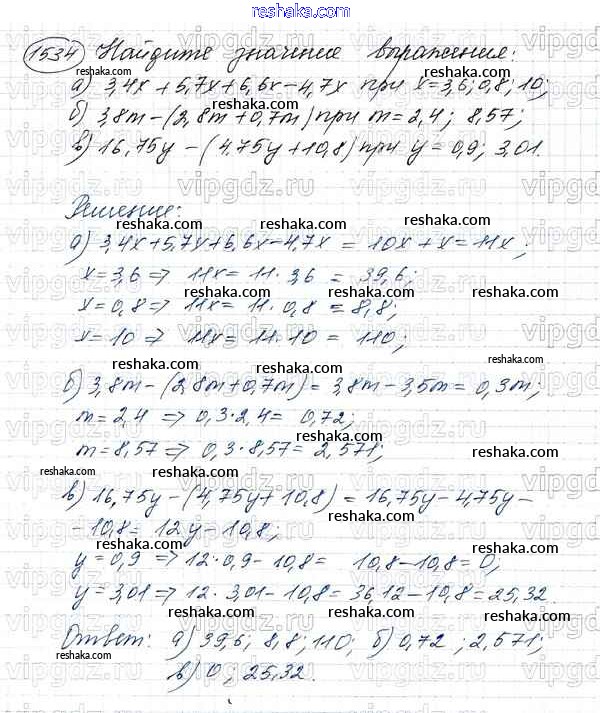 Решака - онлайн ответы Математика Виленкин, Жохов за 5 класс Учебник ФГОС 2013 - 1534