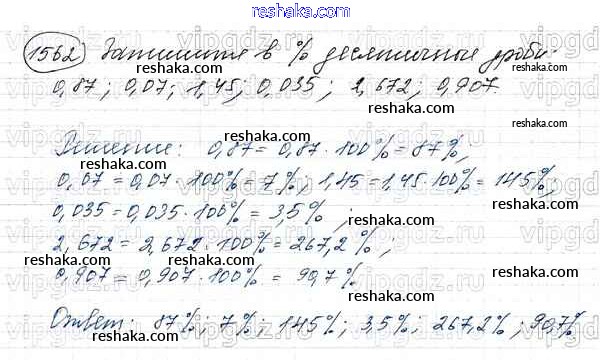 Решака - онлайн ответы Математика Виленкин, Жохов за 5 класс Учебник ФГОС 2013 - 1562