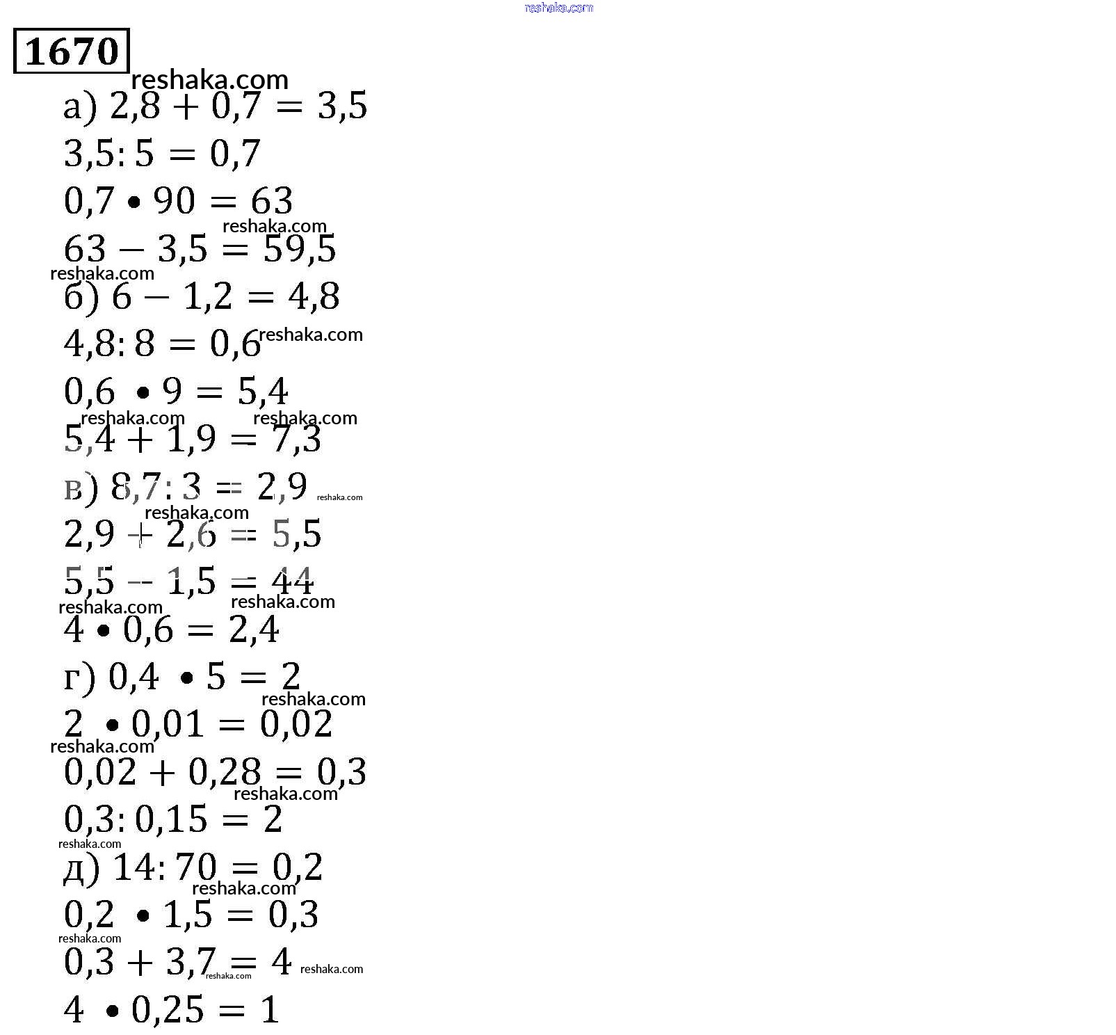 Решака - онлайн ответы Математика Виленкин, Жохов за 5 класс Учебник ФГОС 2013 - 1670