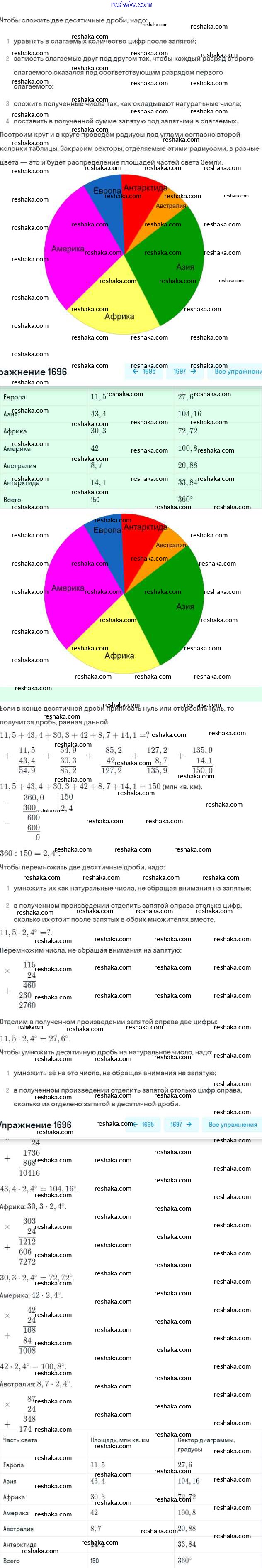 Решака - онлайн ответы Математика Виленкин, Жохов за 5 класс Учебник ФГОС 2013 - 1696