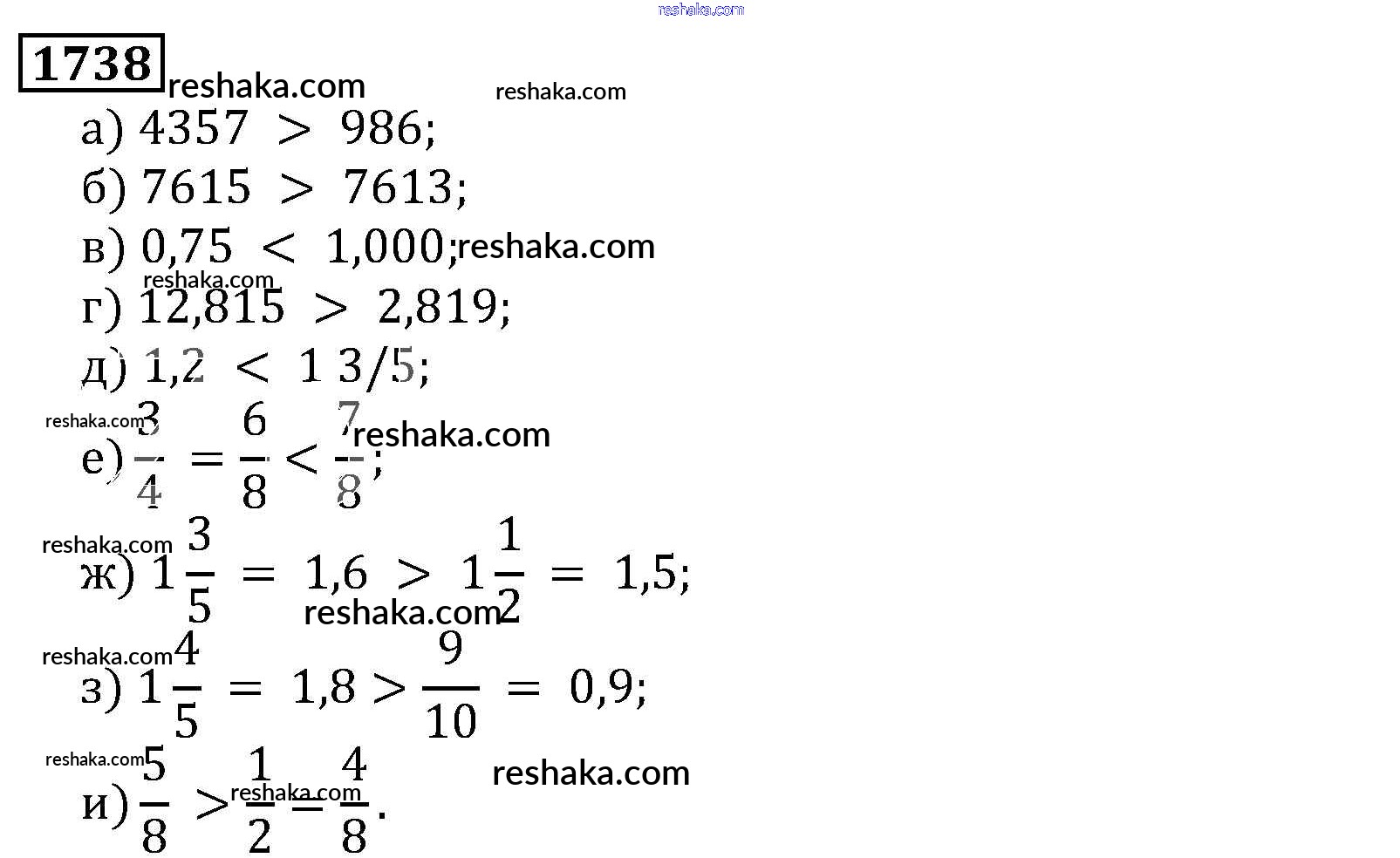 Решака - онлайн ответы Математика Виленкин, Жохов за 5 класс Учебник ФГОС 2013 - 1738