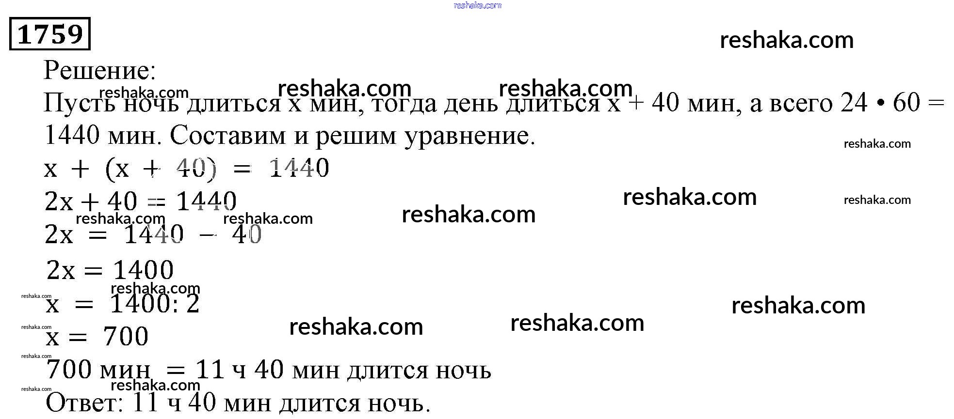 Решака - онлайн ответы Математика Виленкин, Жохов за 5 класс Учебник ФГОС 2013 - 1759