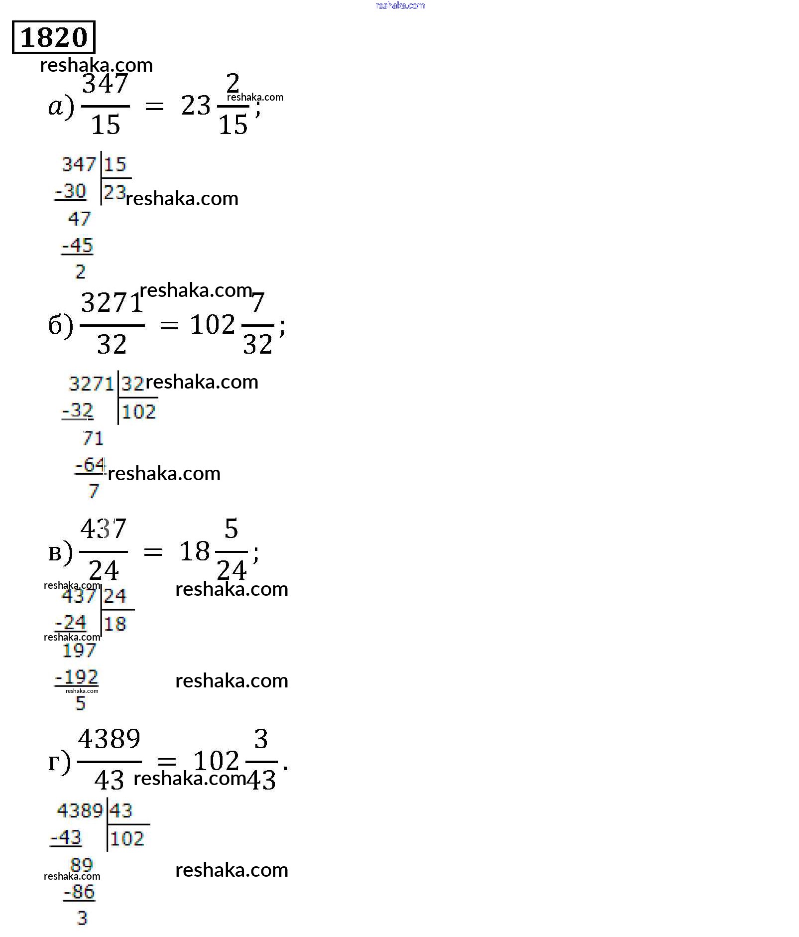 Решака - онлайн ответы Математика Виленкин, Жохов за 5 класс Учебник ФГОС 2013 - 1820