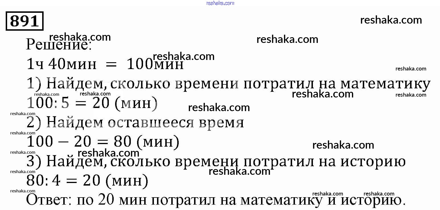 Решака - онлайн ответы Математика Виленкин, Жохов за 5 класс Учебник ФГОС 2013 - 891