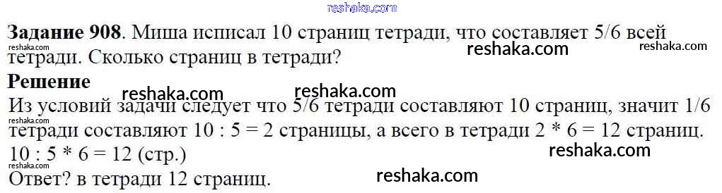 Решака - онлайн ответы Математика Виленкин, Жохов за 5 класс Учебник ФГОС 2013 - 908