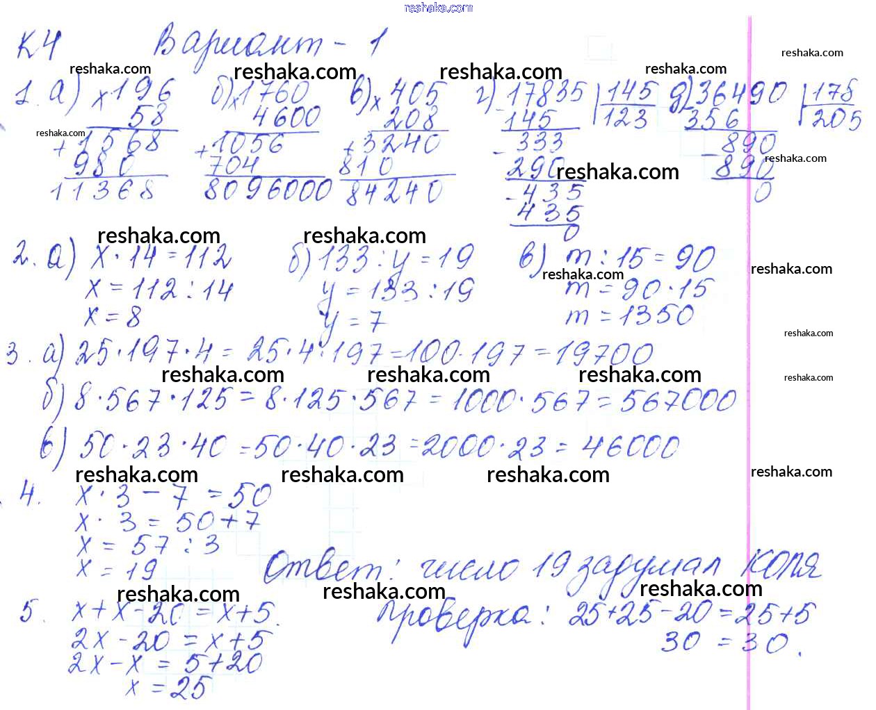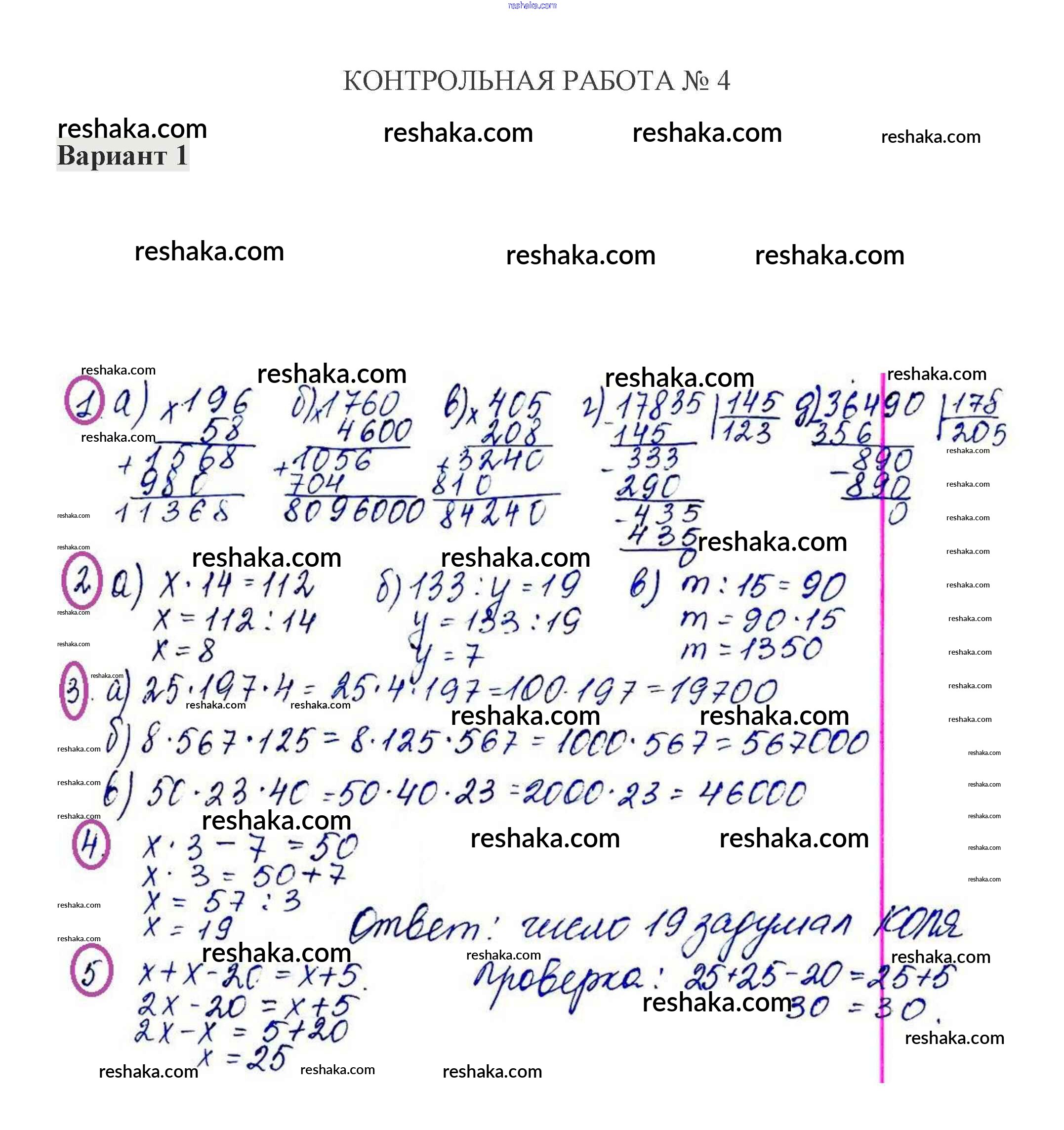 Решака - онлайн ответы Математика Жохов, Крайнева за 5 класс Контрольные работы ФГОС 2012 - 1