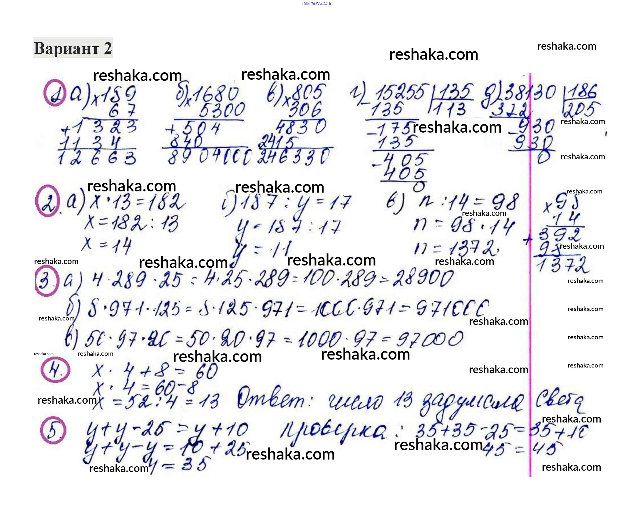 Решака - онлайн ответы Математика Жохов, Крайнева за 5 класс Контрольные работы ФГОС 2012 - 2