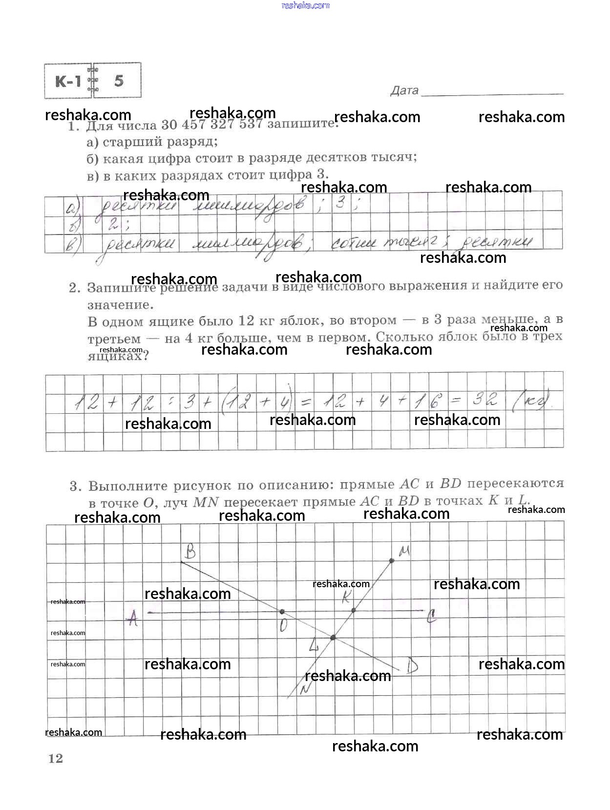 Решака - онлайн ответы Математика Зубарева, Лепешонкова за 5 класс Тетрадь для контрольных работ ФГОС 2018 - 12