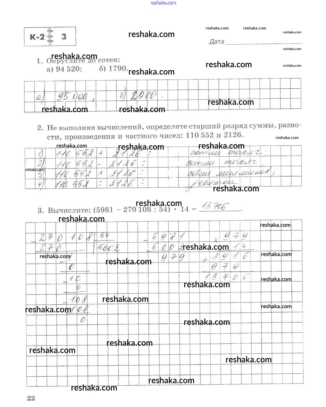 Решака - онлайн ответы Математика Зубарева, Лепешонкова за 5 класс Тетрадь для контрольных работ ФГОС 2018 - 22