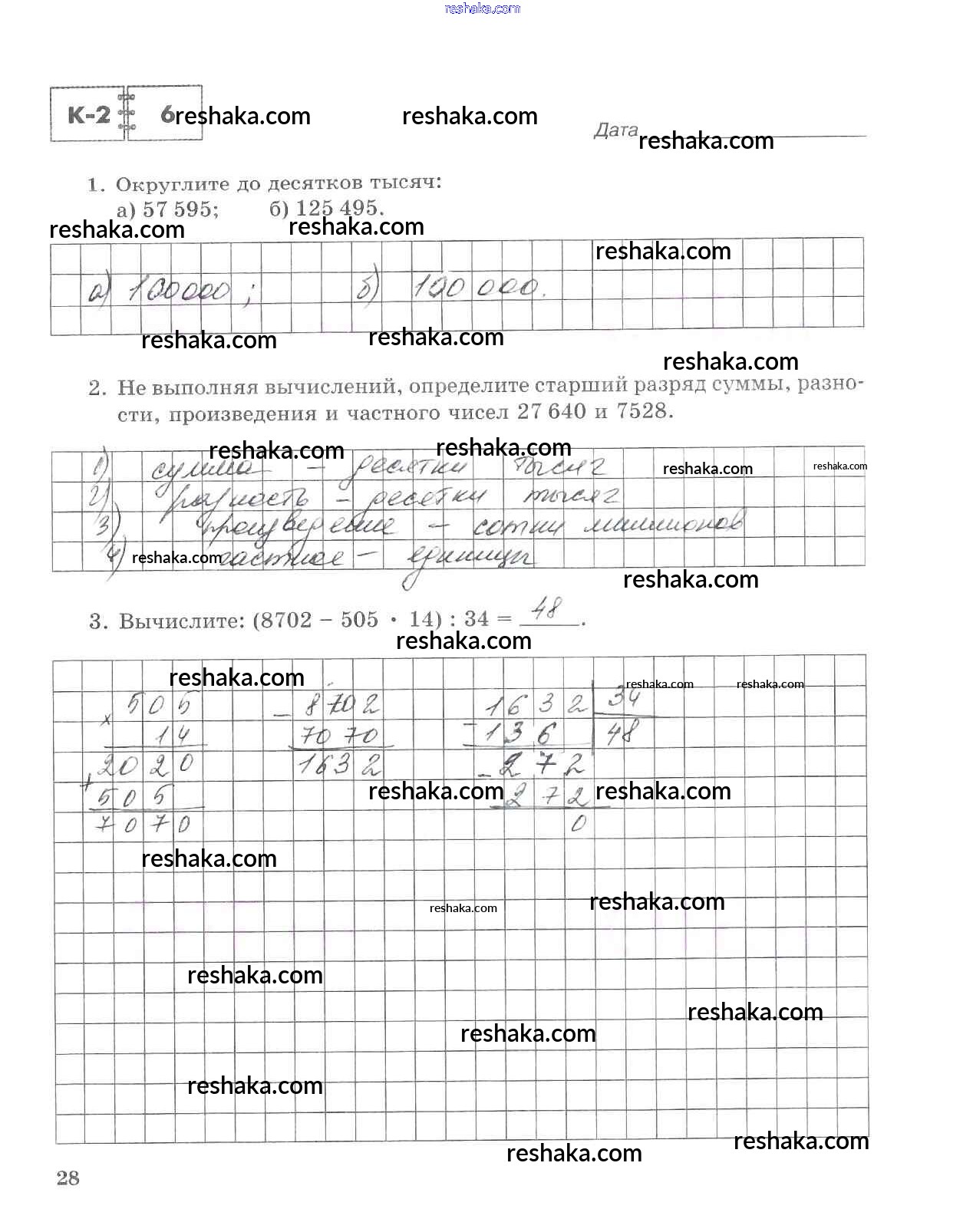 Решака - онлайн ответы Математика Зубарева, Лепешонкова за 5 класс Тетрадь для контрольных работ ФГОС 2018 - 28