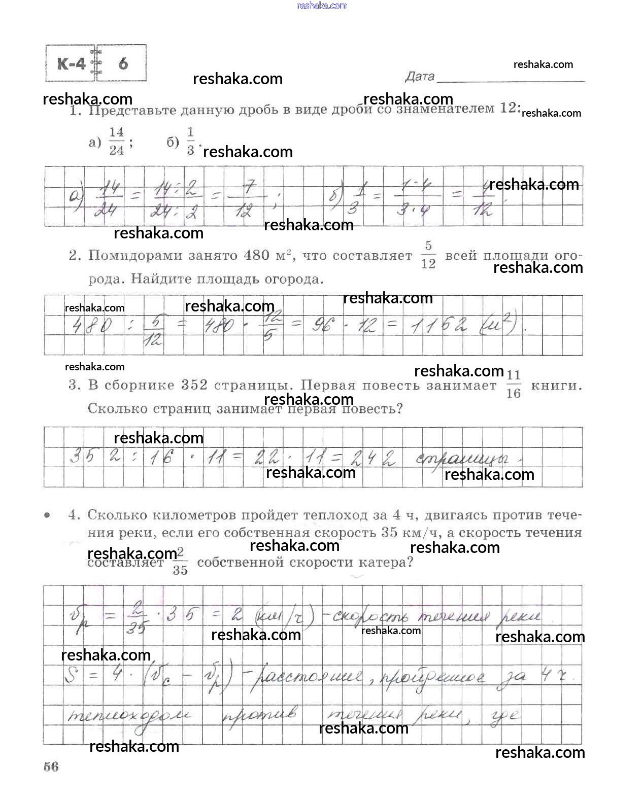 Решака - онлайн ответы Математика Зубарева, Лепешонкова за 5 класс Тетрадь для контрольных работ ФГОС 2018 - 56