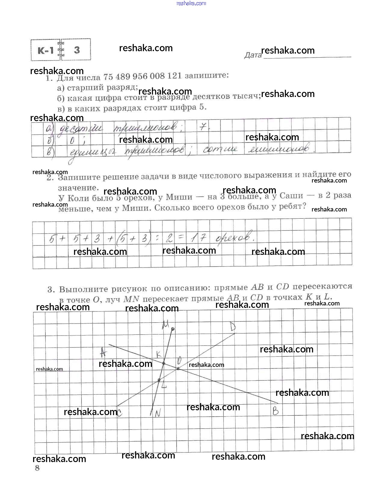 Решака - онлайн ответы Математика Зубарева, Лепешонкова за 5 класс Тетрадь для контрольных работ ФГОС 2018 - 8