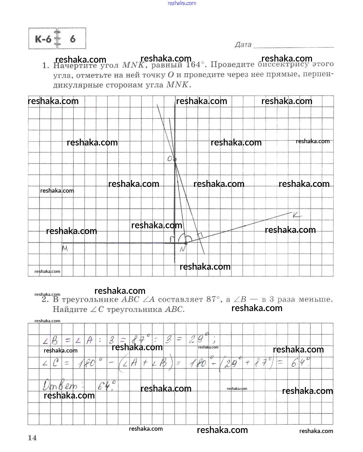Решака - онлайн ответы Математика Зубарева, Лепешонкова за 5 класс Тетрадь для контрольных работ ФГОС 2018 - 14