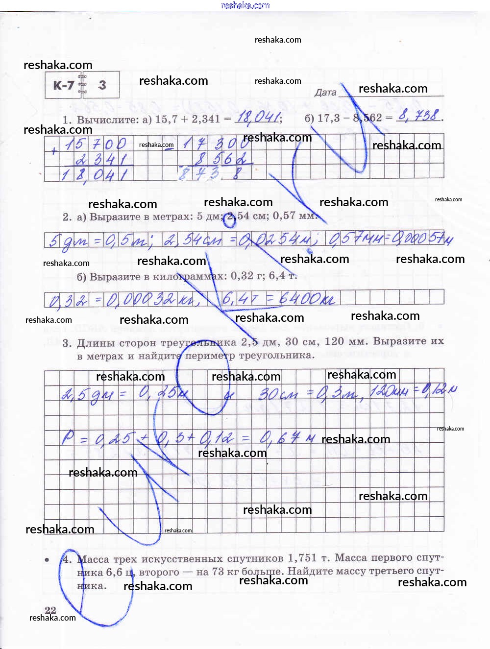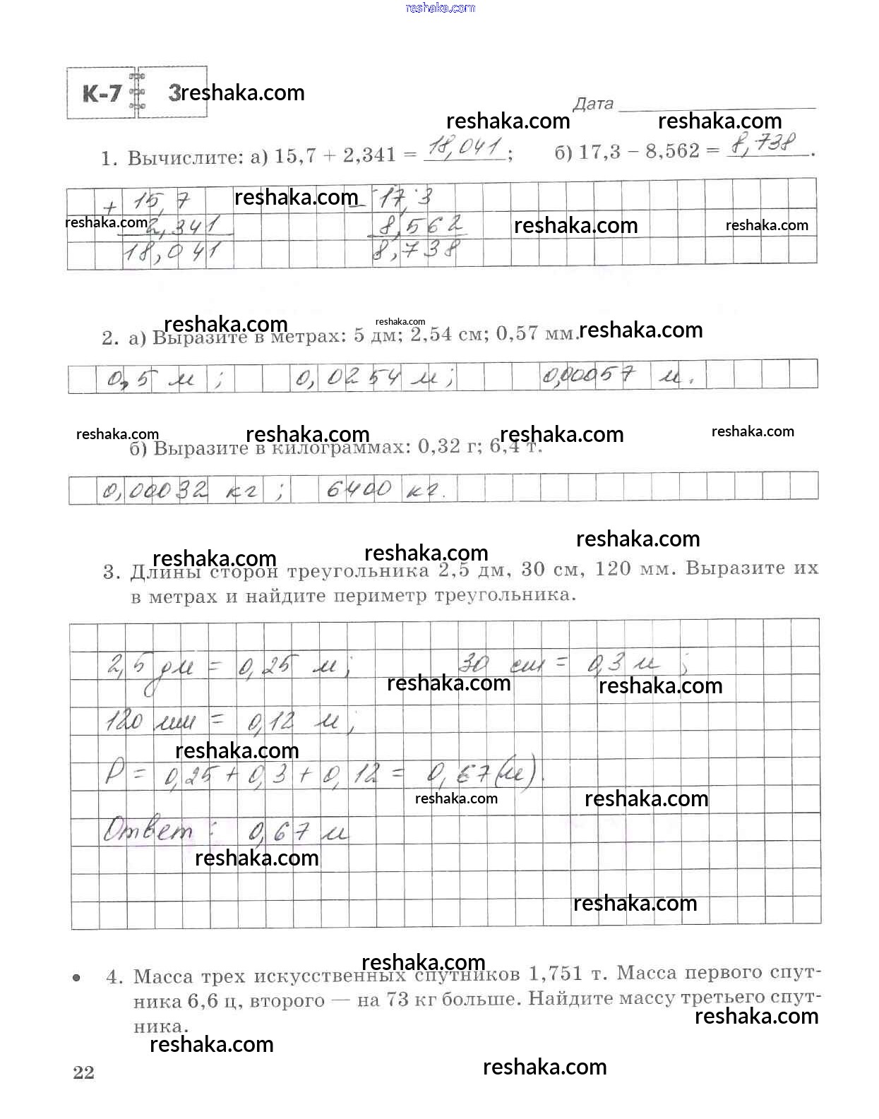 Решака - онлайн ответы Математика Зубарева, Лепешонкова за 5 класс Тетрадь для контрольных работ ФГОС 2018 - 22