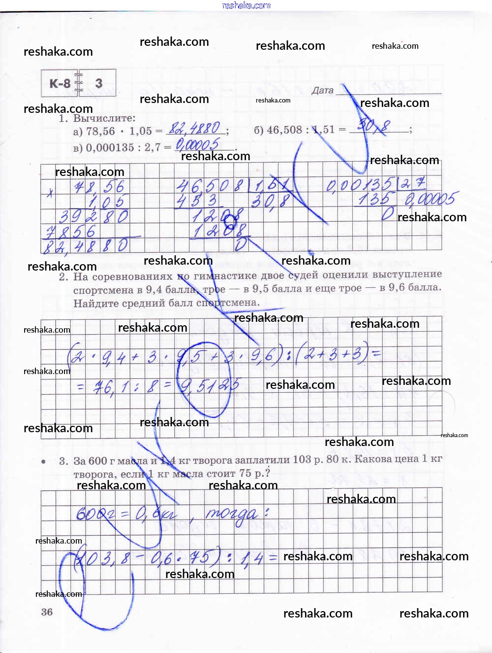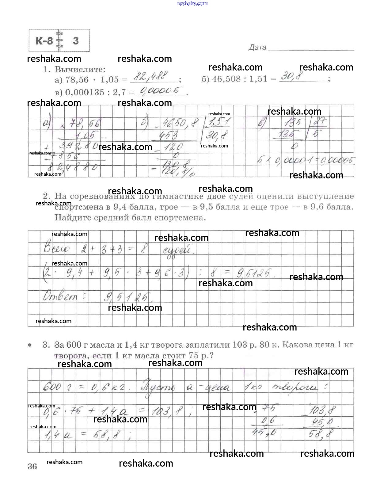 Решака - онлайн ответы Математика Зубарева, Лепешонкова за 5 класс Тетрадь для контрольных работ ФГОС 2018 - 36