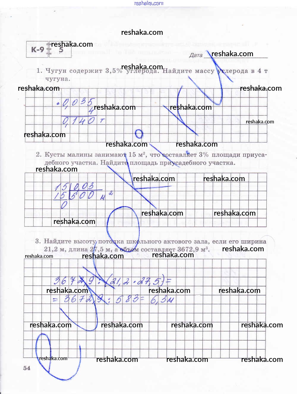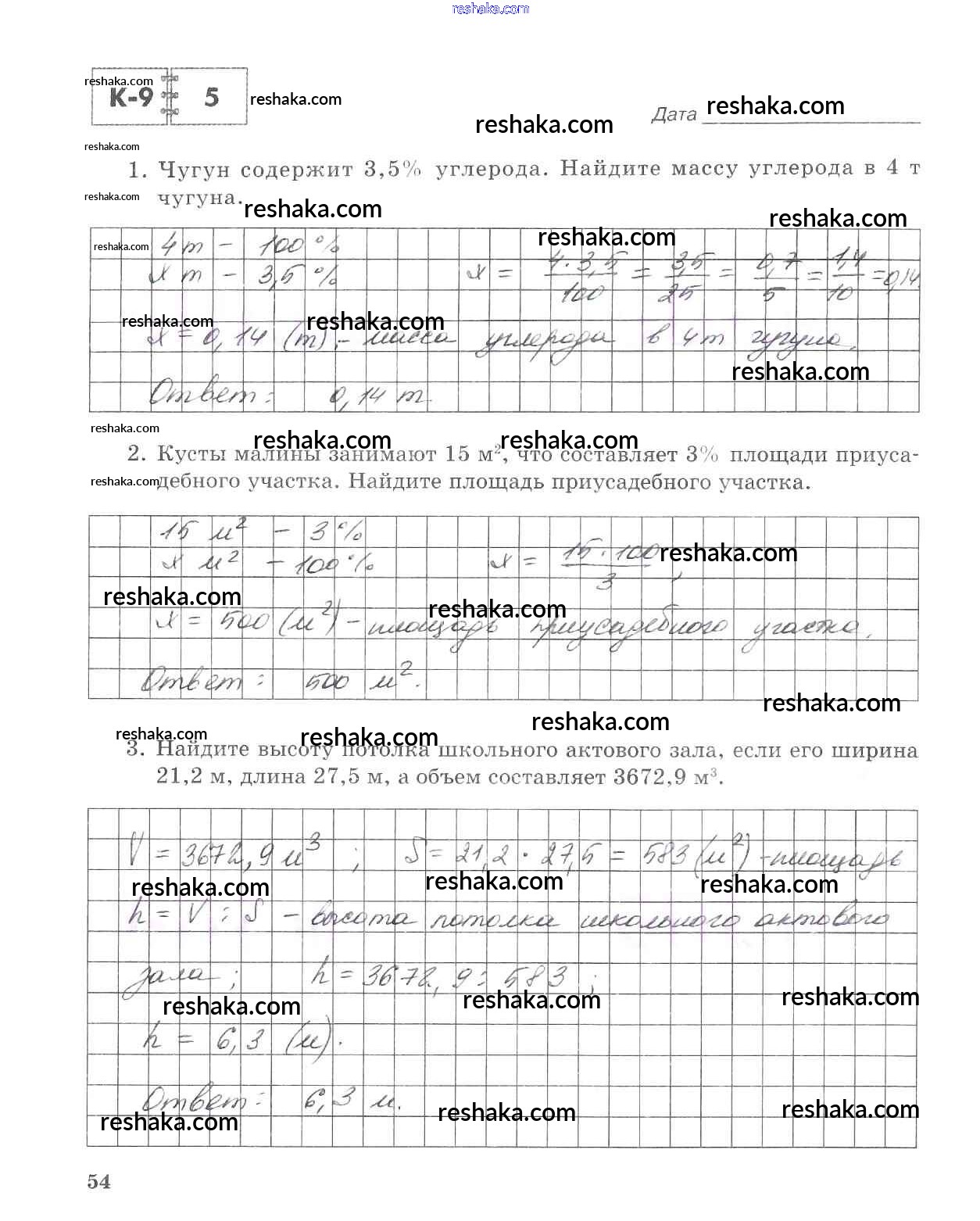 Решака - онлайн ответы Математика Зубарева, Лепешонкова за 5 класс Тетрадь для контрольных работ ФГОС 2018 - 54