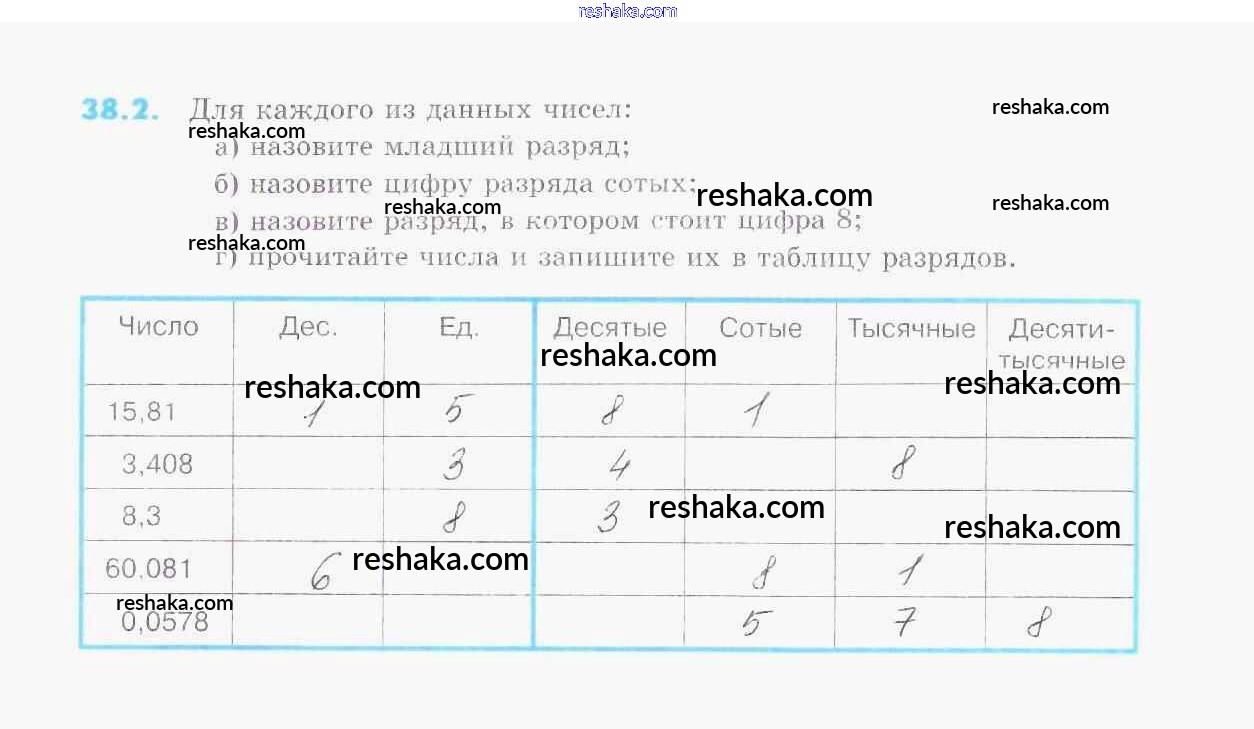 Представляем вам сборники по Математике, с готовыми ответами к Рабочей тетради Зубарева школьной программы для учеников пятый класса. Это не просто гдз с ответом, а с подсказками, как верно решить §38. Понятие десятичной дроби. Чтение и запись десятичных дробей 2. Проверяй домашку с умом и получай высший балл!