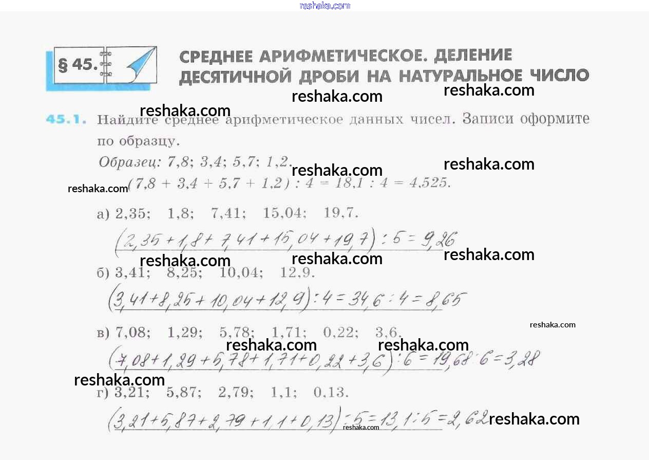 Представляем вам сборники по Математике, с готовыми ответами к Рабочей тетради Зубарева школьной программы для учеников пятый класса. Это не просто гдз с ответом, а с подсказками, как верно решить §45. Среднее арифметическое. Деление десятичной дроби на натуральное число 1. Проверяй домашку с умом и получай высший балл!