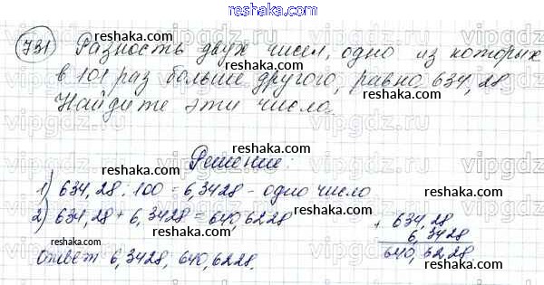 Решака - онлайн ответы Математика Зубарева, Мордкович за 5 класс Учебник ФГОС 2015 - 731