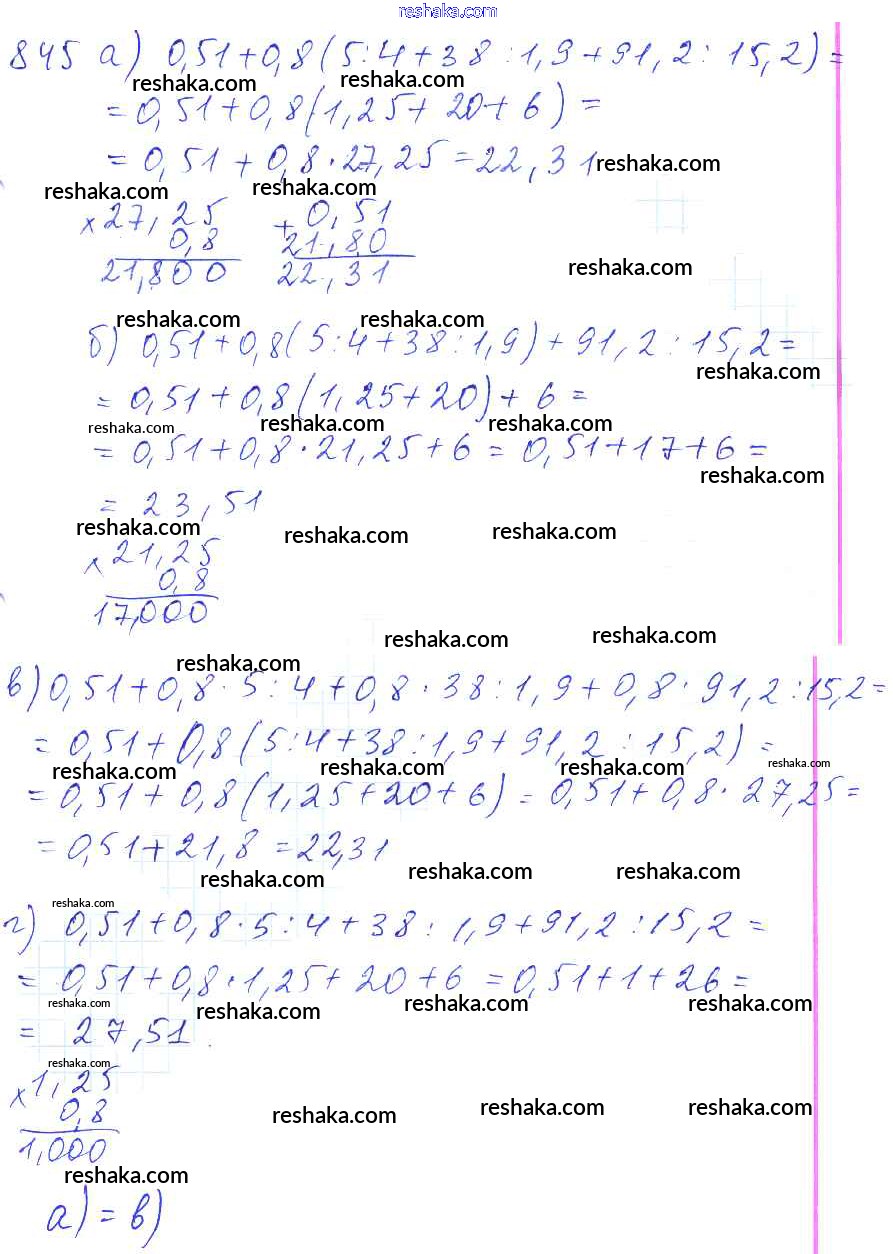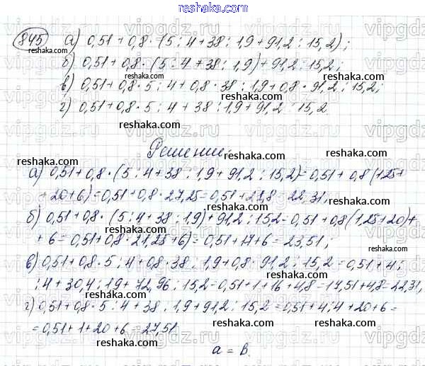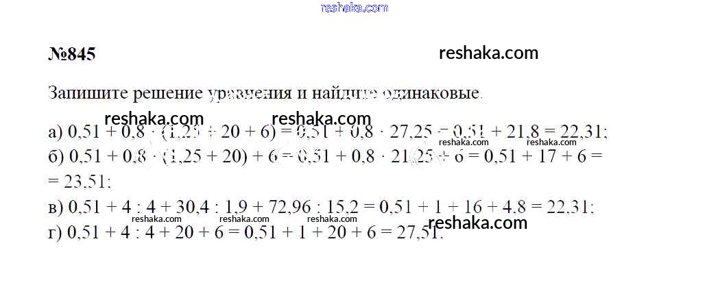 Решака - онлайн ответы Математика Зубарева, Мордкович за 5 класс Учебник ФГОС 2015 - 845