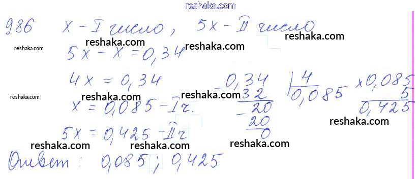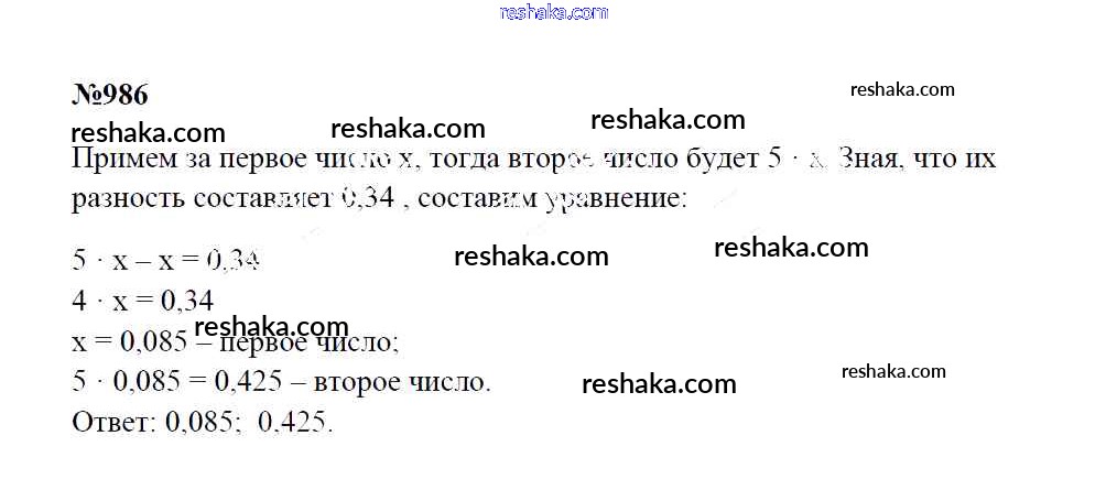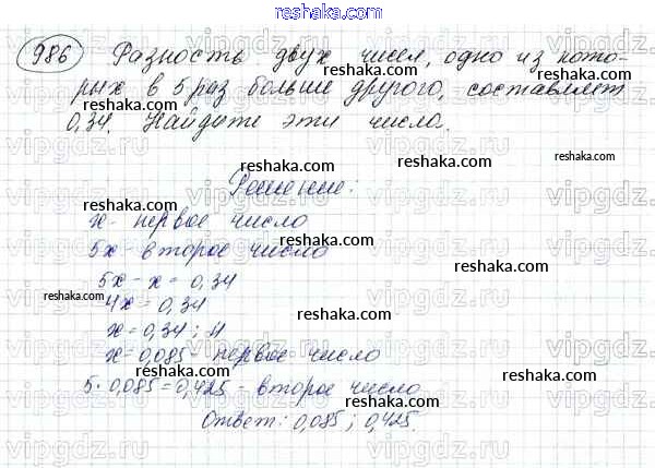 Решака - онлайн ответы Математика Зубарева, Мордкович за 5 класс Учебник ФГОС 2015 - 986