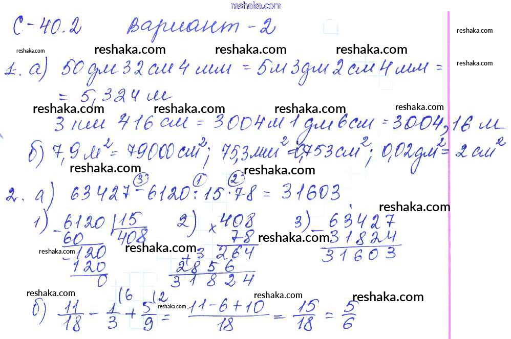 Представляем вам сборники по Математике, с готовыми ответами к Самостоятельным работам Зубарева школьной программы для учеников пятый класса. Это не просто гдз с ответом, а с подсказками, как верно решить СР-40.2 2. Проверяй домашку с умом и получай высший балл!