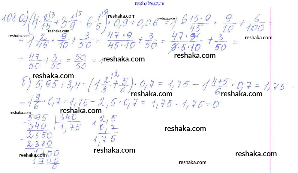 Решака - онлайн ответы Математика Чесноков, Нешков за 6 класс Дидактические материалы ФГОС 2014 - 108