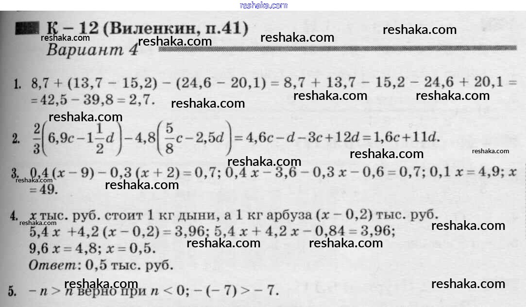 контрольная работа / к учебнику Виленкина / кр-12 / 4