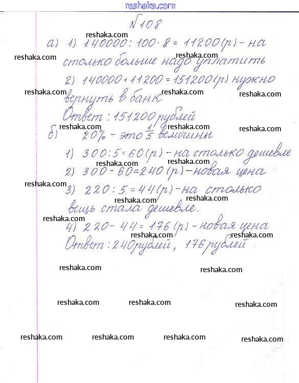 Решака - онлайн ответы Математика Дорофеев, Шарыгин за 6 класс Учебник ФГОС 2014 - 108