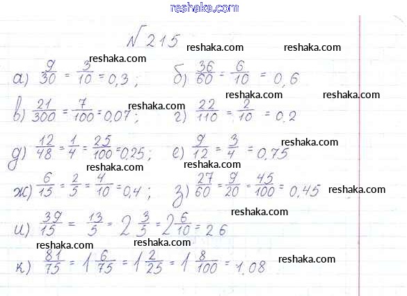 Решака - онлайн ответы Математика Дорофеев, Шарыгин за 6 класс Учебник ФГОС 2014 - 215