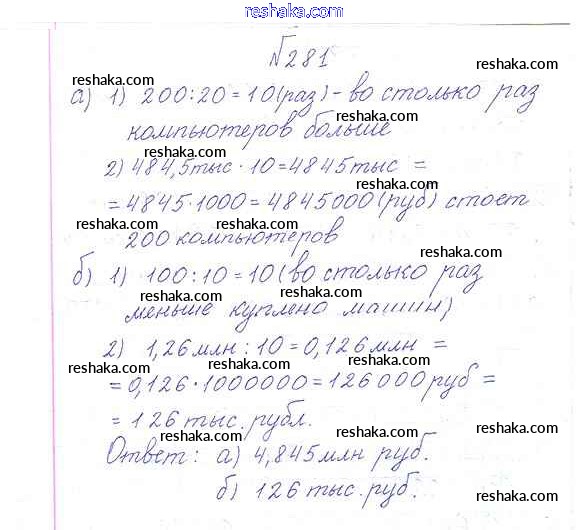 Решака - онлайн ответы Математика Дорофеев, Шарыгин за 6 класс Учебник ФГОС 2014 - 281