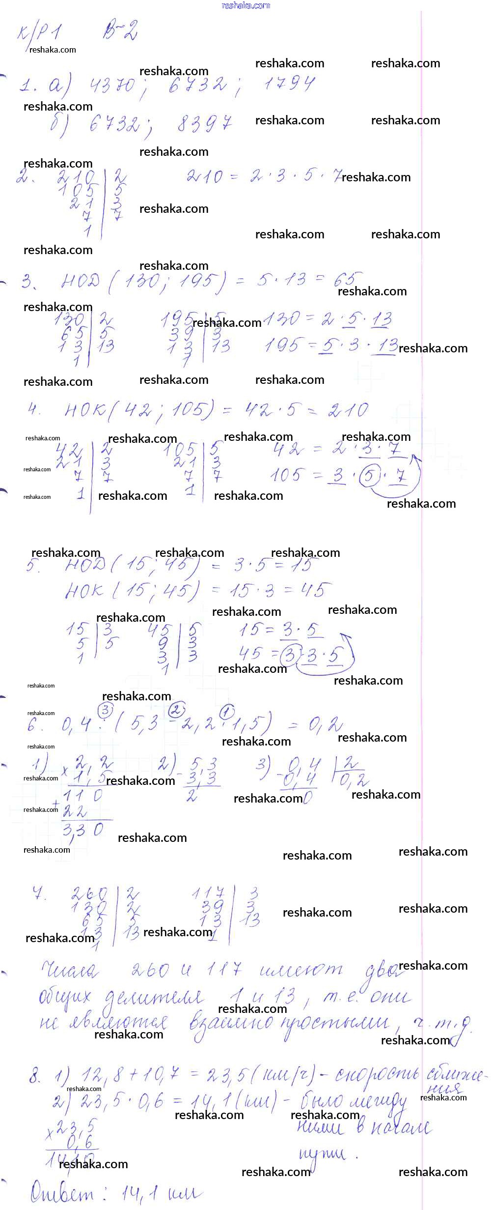 Решака - онлайн ответы Математика Дудницын, Кронгауз за 6 класс Контрольные работы ФГОС 2013 - 2