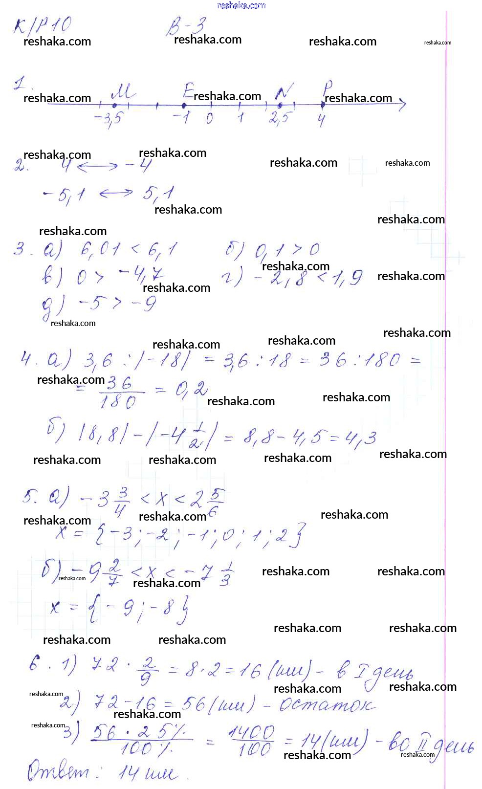 Решака - онлайн ответы Математика Дудницын, Кронгауз за 6 класс Контрольные работы ФГОС 2013 - 3