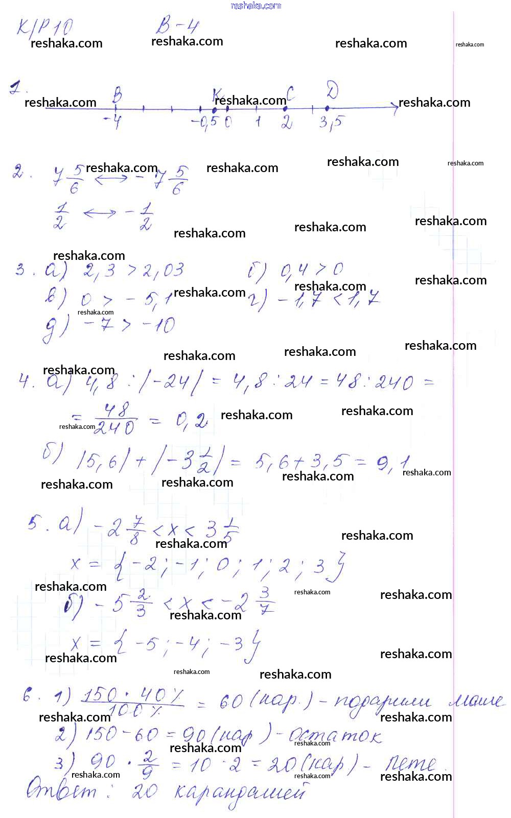 Решака - онлайн ответы Математика Дудницын, Кронгауз за 6 класс Контрольные работы ФГОС 2013 - 4