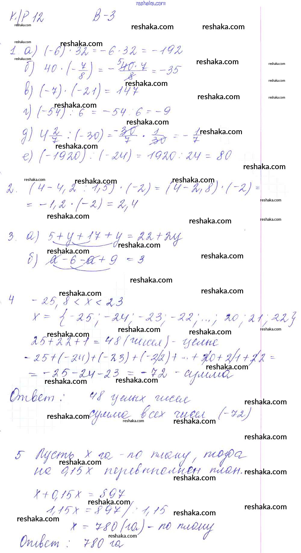 Решака - онлайн ответы Математика Дудницын, Кронгауз за 6 класс Контрольные работы ФГОС 2013 - 3