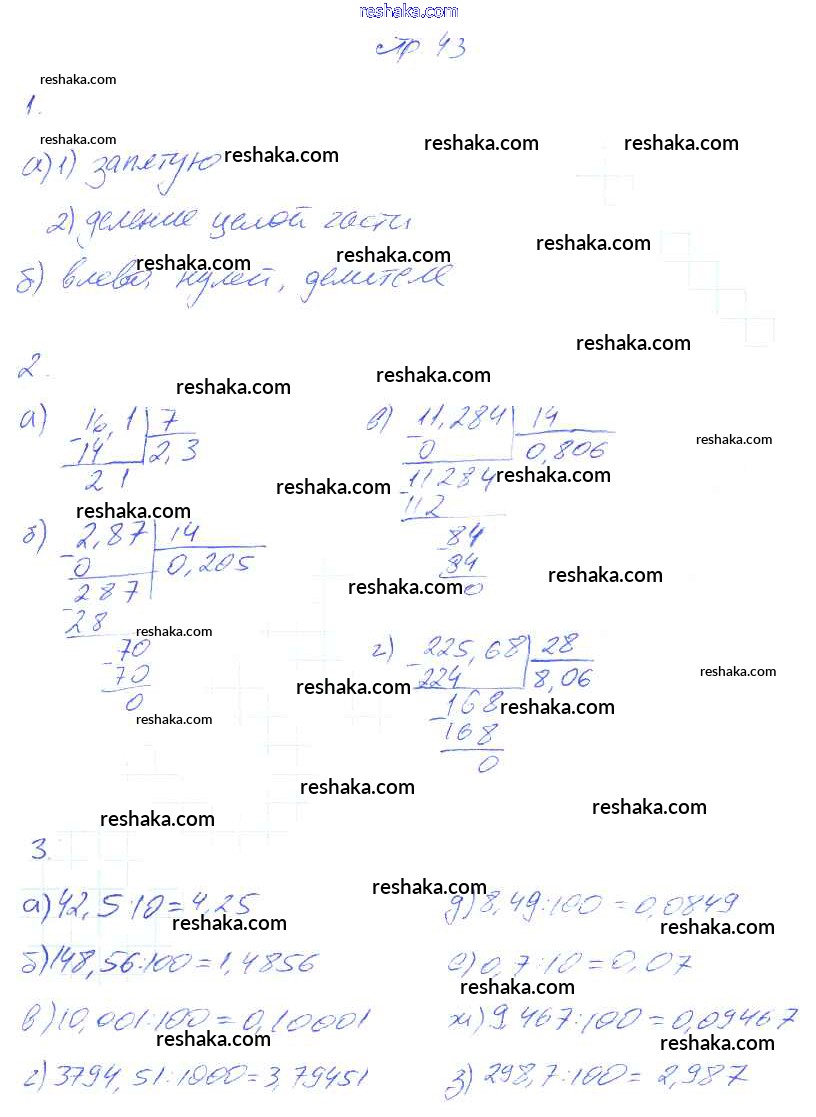 Решака - онлайн ответы Математика Ерина за 6 класс Рабочая тетрадь ФГОС 2017 - 43