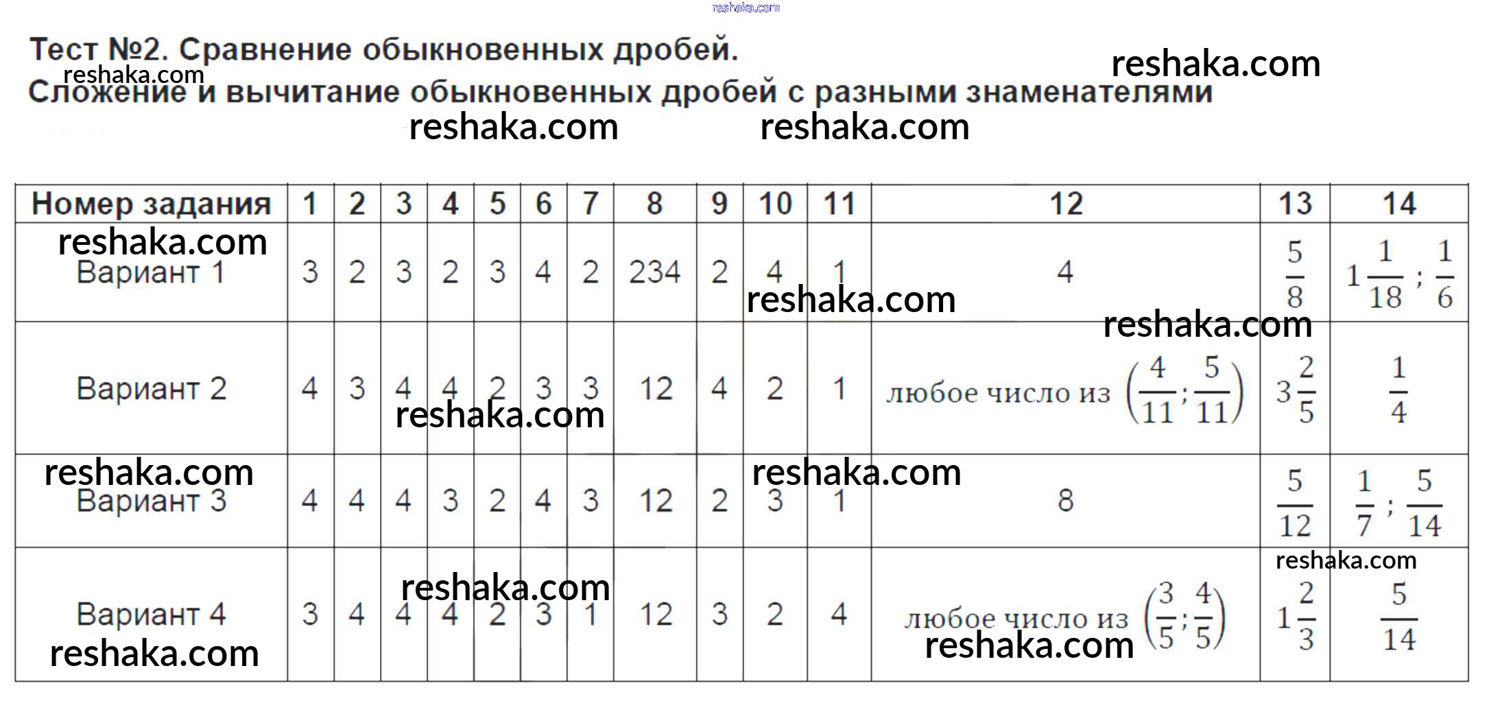 Решака - онлайн ответы Математика Ерина за 6 класс Тесты ФГОС 2017 - 2