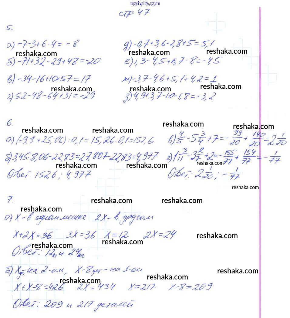 Решака - онлайн ответы Математика Ерина за 6 класс Рабочая тетрадь ФГОС 2014 - 47