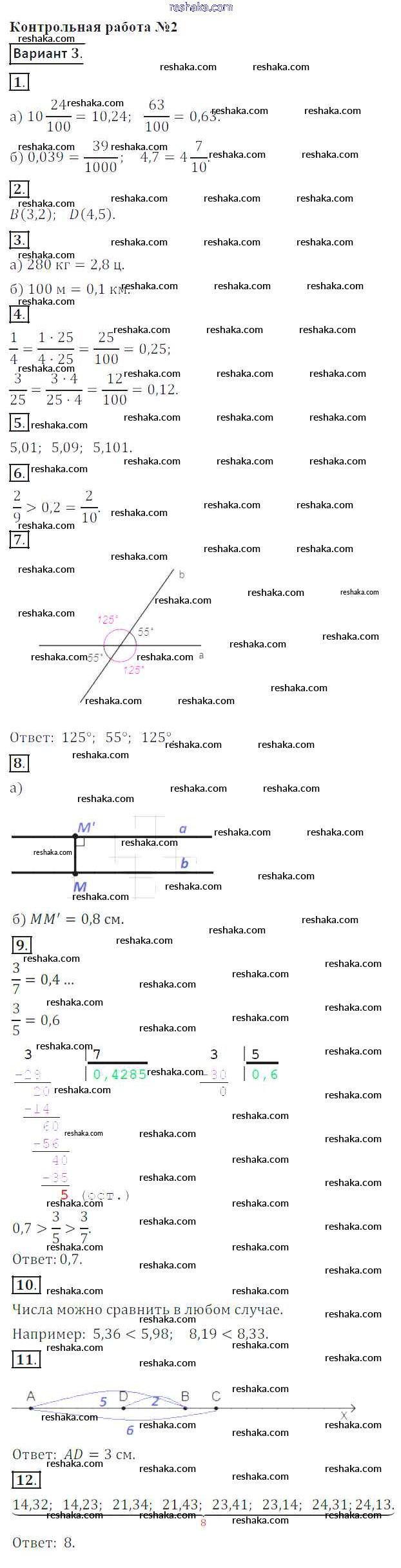 Решака - онлайн ответы Математика Кузнецова, Минаева за 6 класс Контрольные работы ФГОС 2017 - 3