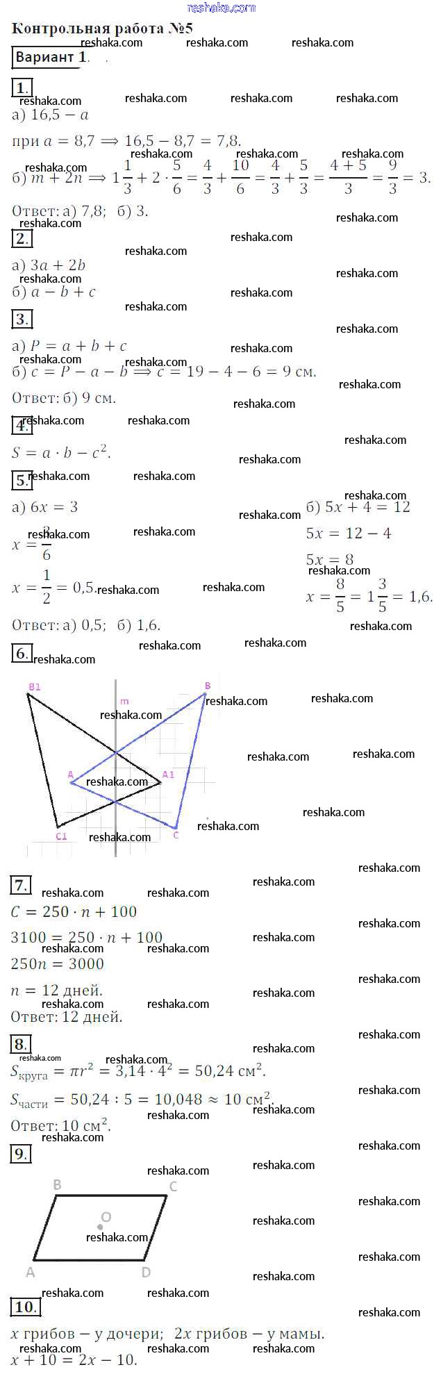 Решака - онлайн ответы Математика Кузнецова, Минаева за 6 класс Контрольные работы ФГОС 2017 - 1