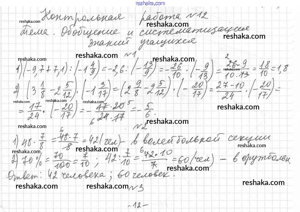 Решака - онлайн ответы Математика Мерзляк, Полонский за 6 класс Дидактические материалы ФГОС 2017 - 1