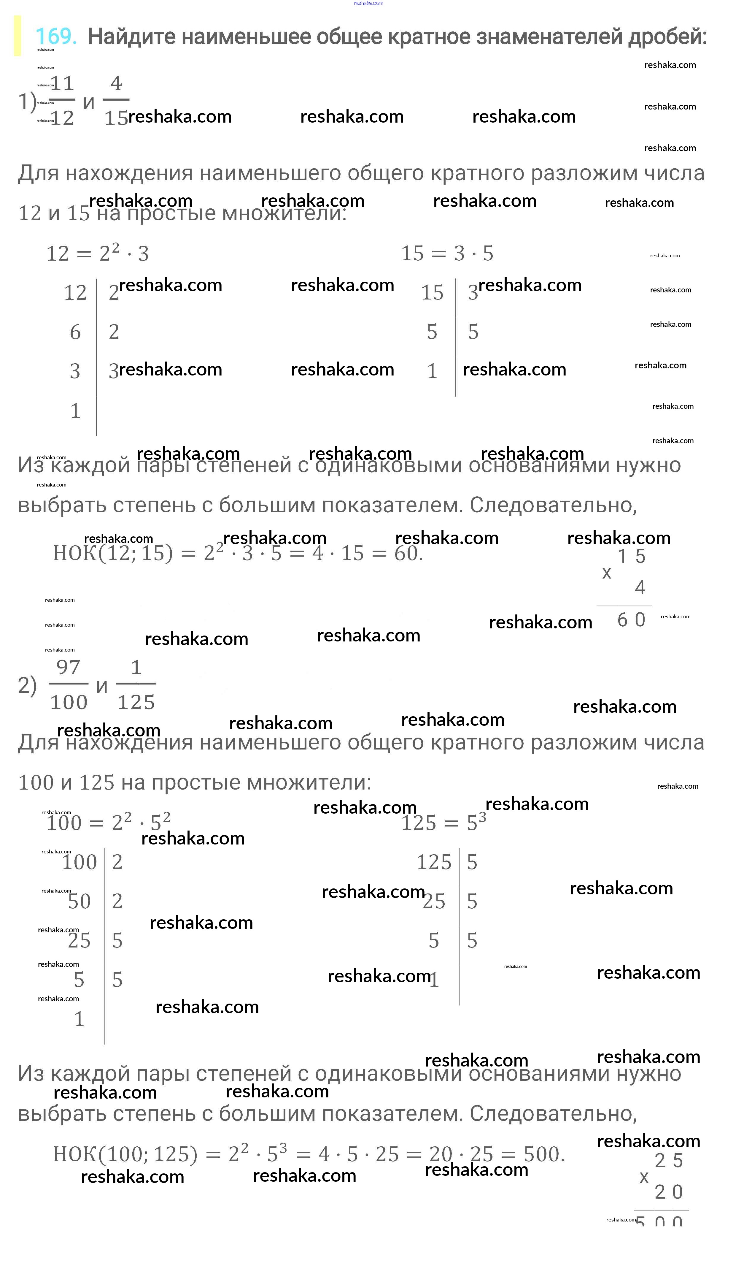 Решака - онлайн ответы Математика Мерзляк, Полонский за 6 класс Учебник ФГОС 2016 - 169