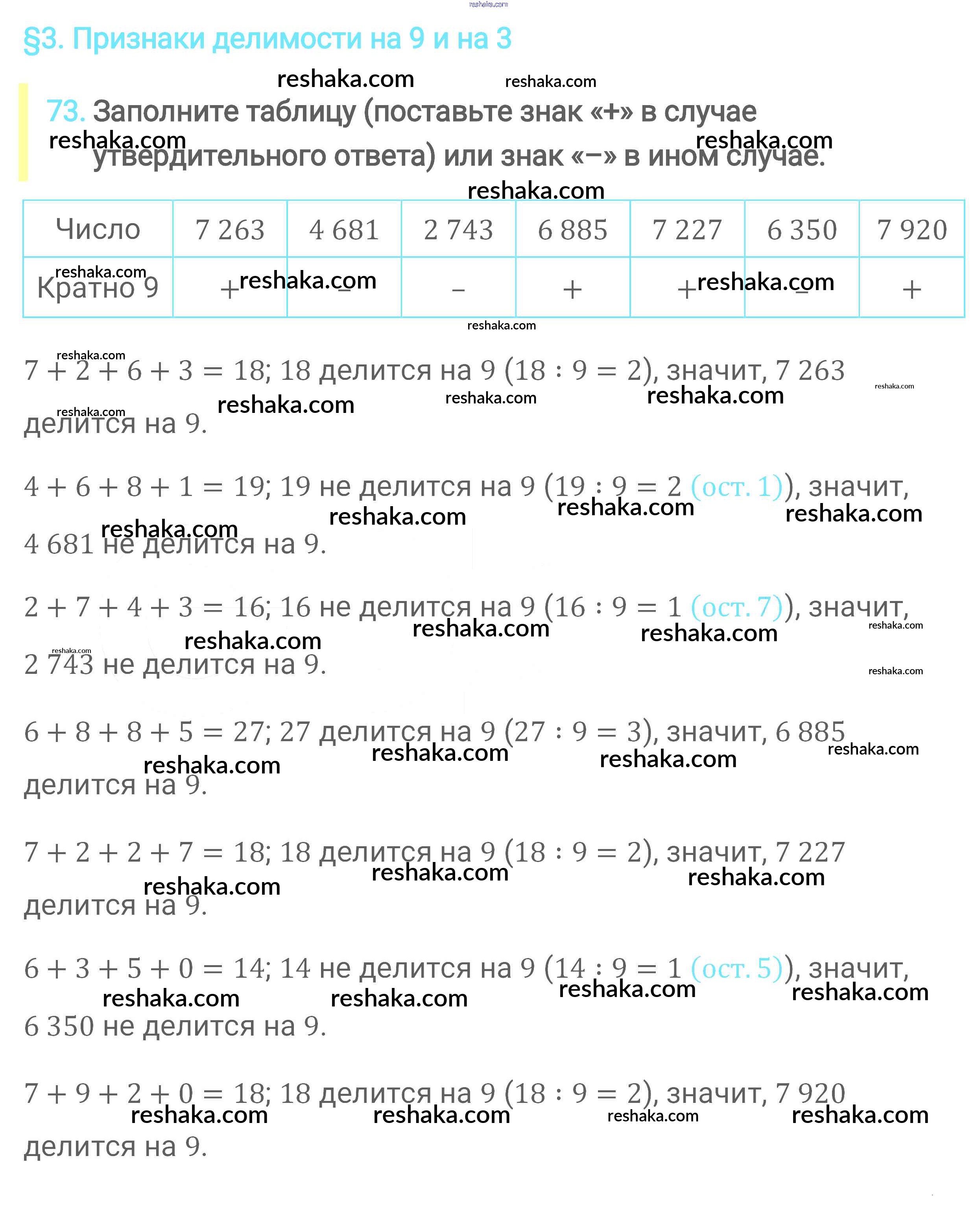 Представляем вам сборники по Математике, с готовыми ответами к Учебнику Мерзляк школьной программы для учеников шестой класса. Это не просто гдз с ответом, а с подсказками, как верно решить Глава 1. Делимость натуральных чисел (упражнения) 73. Проверяй домашку с умом и получай высший балл!