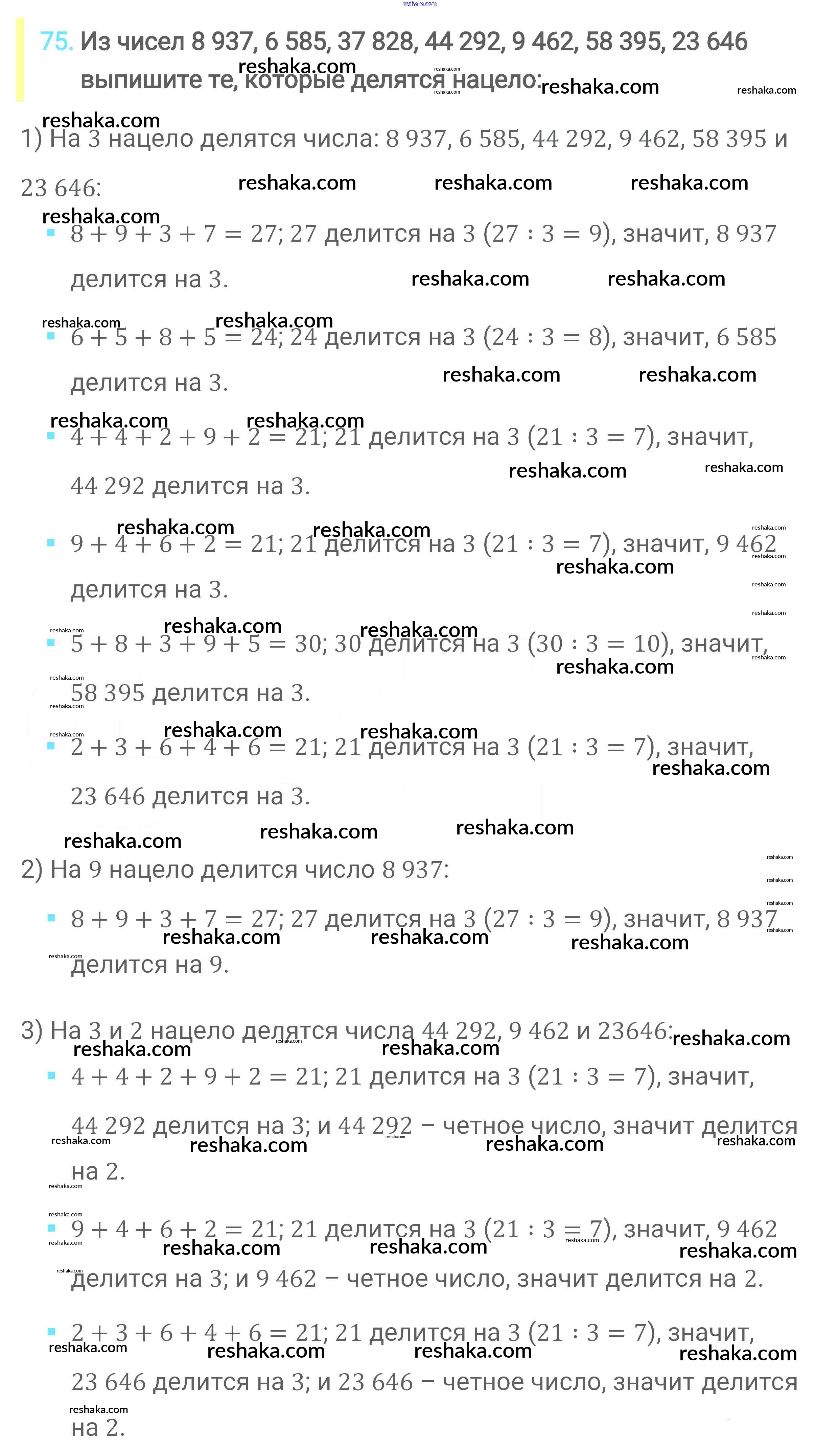 Представляем вам сборники по Математике, с готовыми ответами к Учебнику Мерзляк школьной программы для учеников шестой класса. Это не просто гдз с ответом, а с подсказками, как верно решить Глава 1. Делимость натуральных чисел (упражнения) 75. Проверяй домашку с умом и получай высший балл!