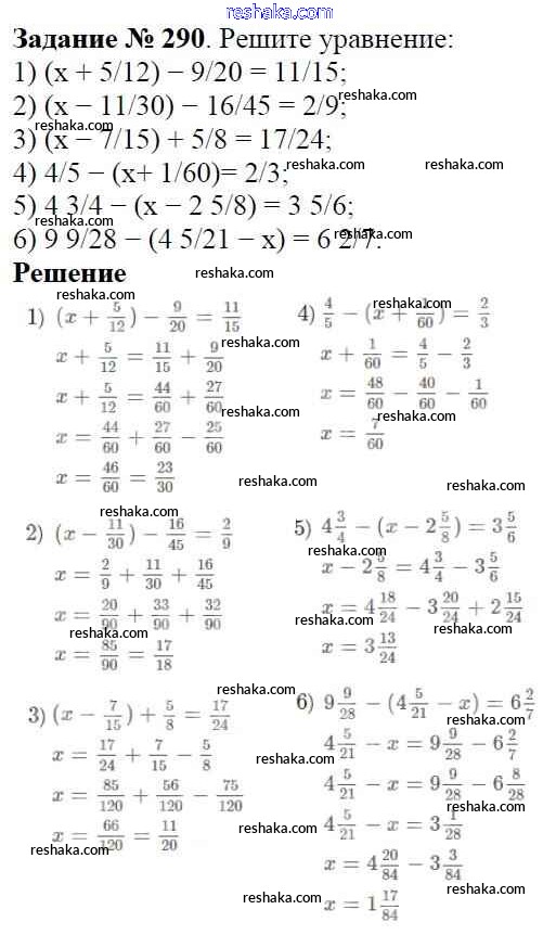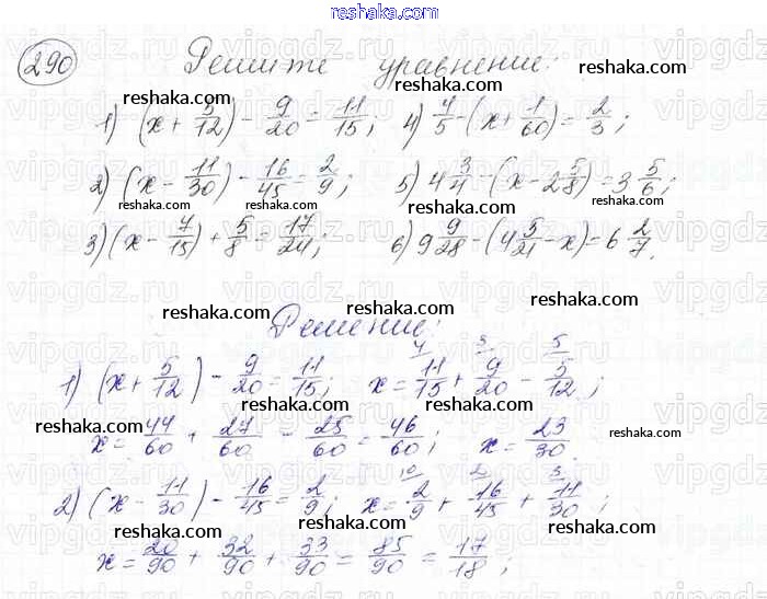 Решака - онлайн ответы Математика Мерзляк, Полонский за 6 класс Учебник ФГОС 2016 - 290