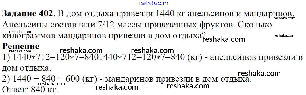 Решака - онлайн ответы Математика Мерзляк, Полонский за 6 класс Учебник ФГОС 2016 - 402