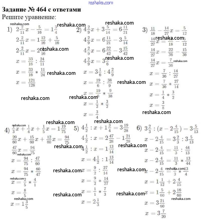 Решака - онлайн ответы Математика Мерзляк, Полонский за 6 класс Учебник ФГОС 2016 - 464