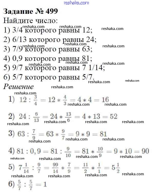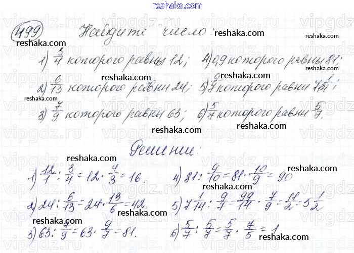 Решака - онлайн ответы Математика Мерзляк, Полонский за 6 класс Учебник ФГОС 2016 - 499