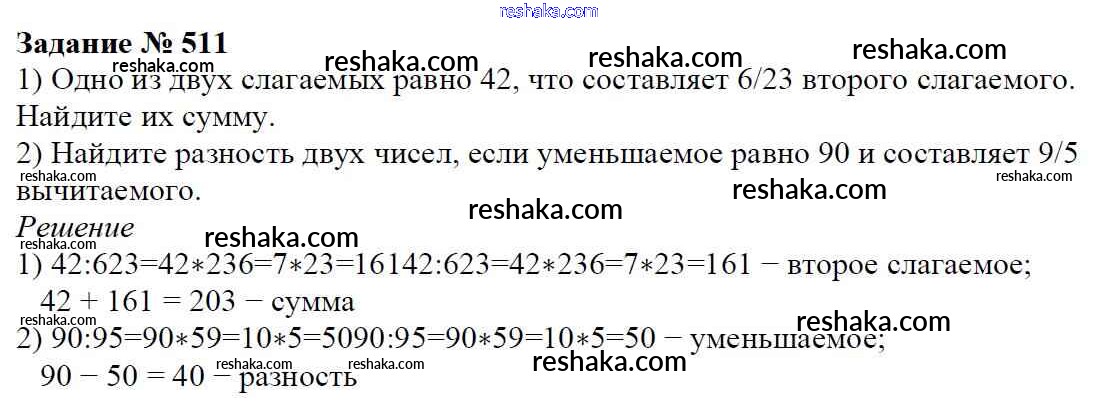 Решака - онлайн ответы Математика Мерзляк, Полонский за 6 класс Учебник ФГОС 2016 - 511