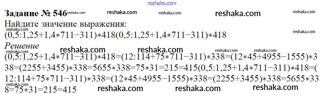 Решака - онлайн ответы Математика Мерзляк, Полонский за 6 класс Учебник ФГОС 2016 - 546